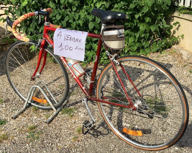 On another day a few of us who love cycling history and culture were very much taken with this classic Peugeot poised by the side of the road. With its 100 Euro price tag there were a few of us who would have liked to take it away if the logistics of transporting weren't such a problem ...
